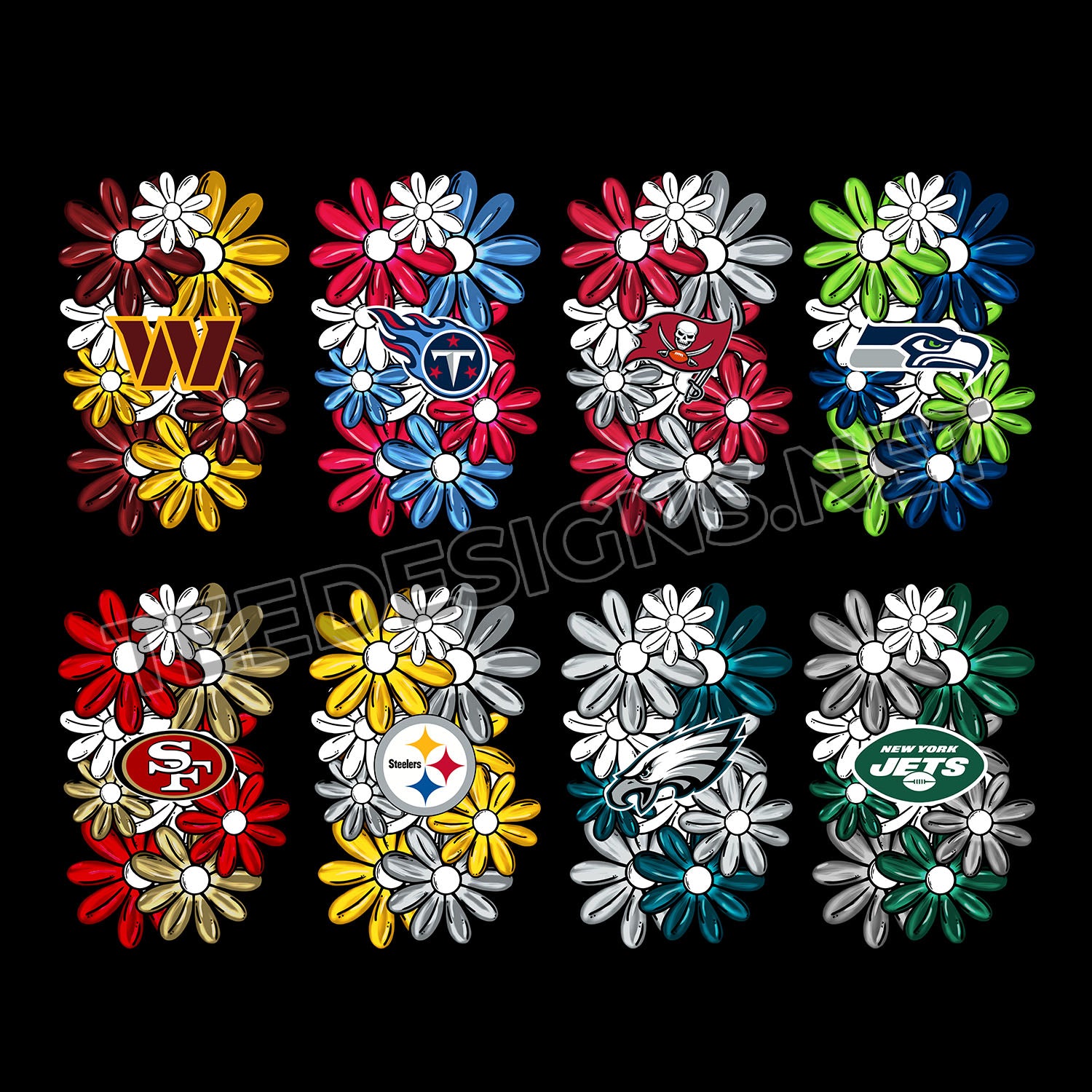 Digital Download Details for 32 Floral NFL Team Sleeve Designs PNG