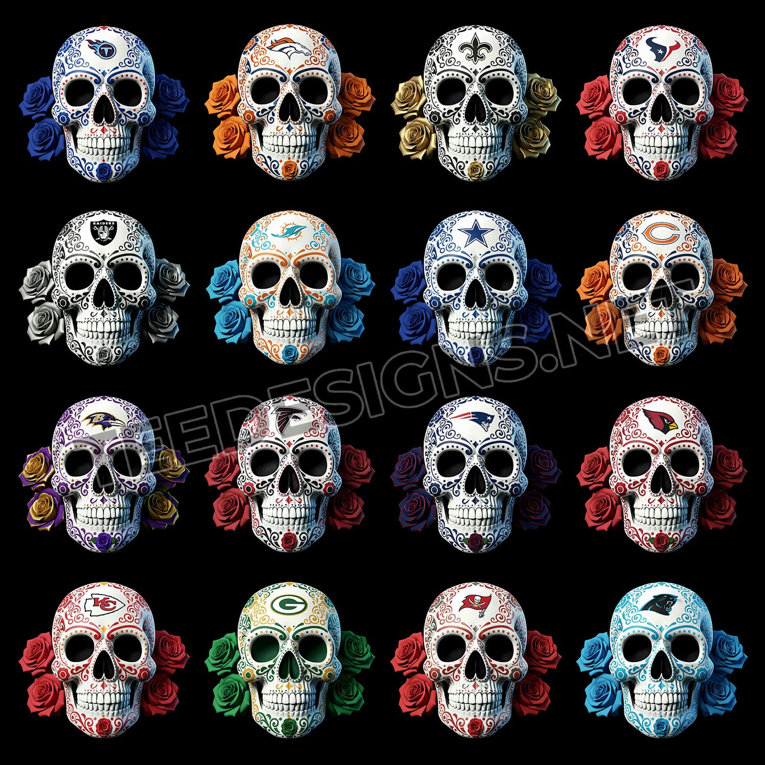 Digital Download Details for 32 Floral Skull NFL Designs PNG