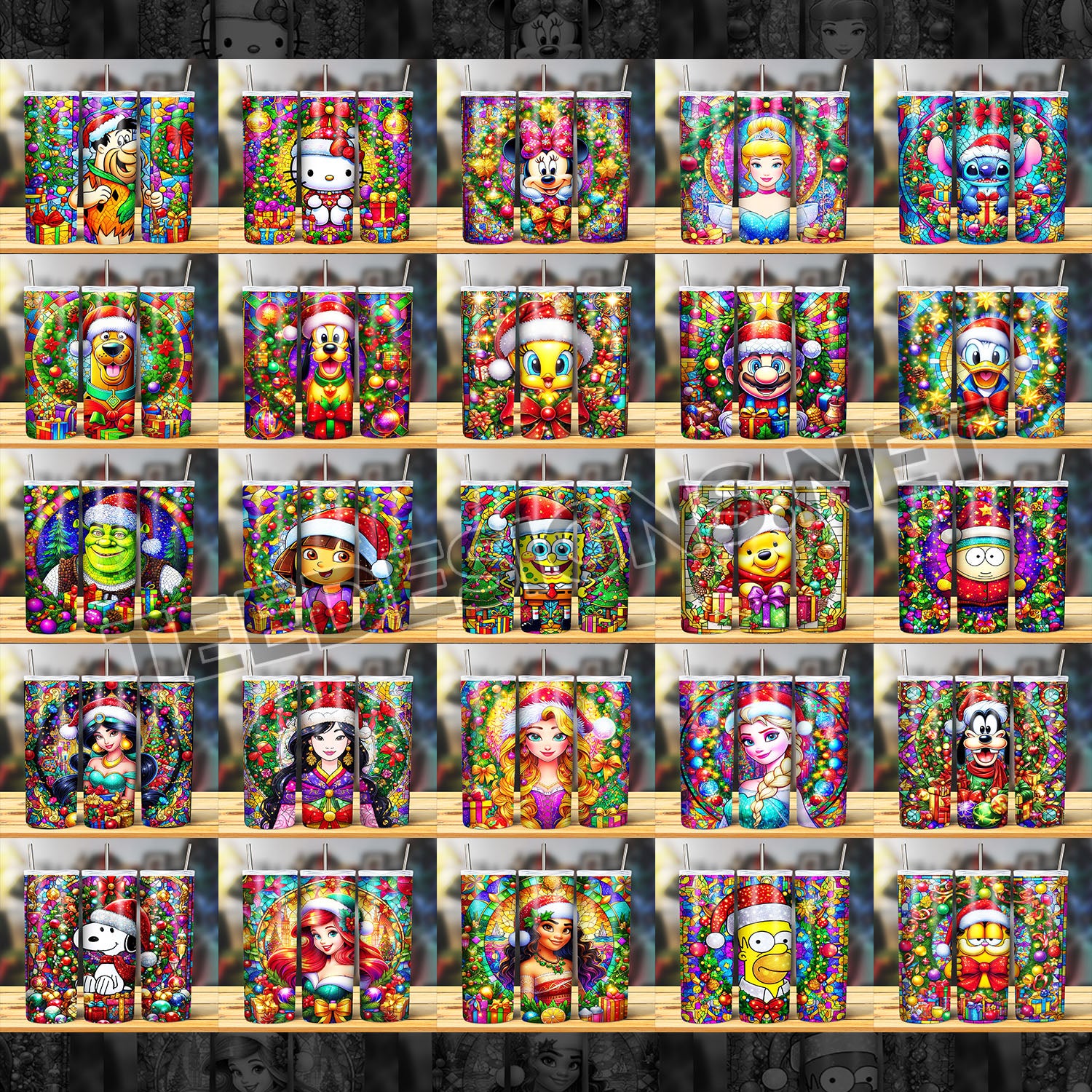 Digital Download Details for 45 Christmas Cartoon Stained Glass Tumbler Designs